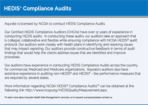 Aqurate Health Data Management’s NCQA-certified auditors have the expertise required to conduct the audit and assist your organization in achieving and maximizing reportable measures and rates.