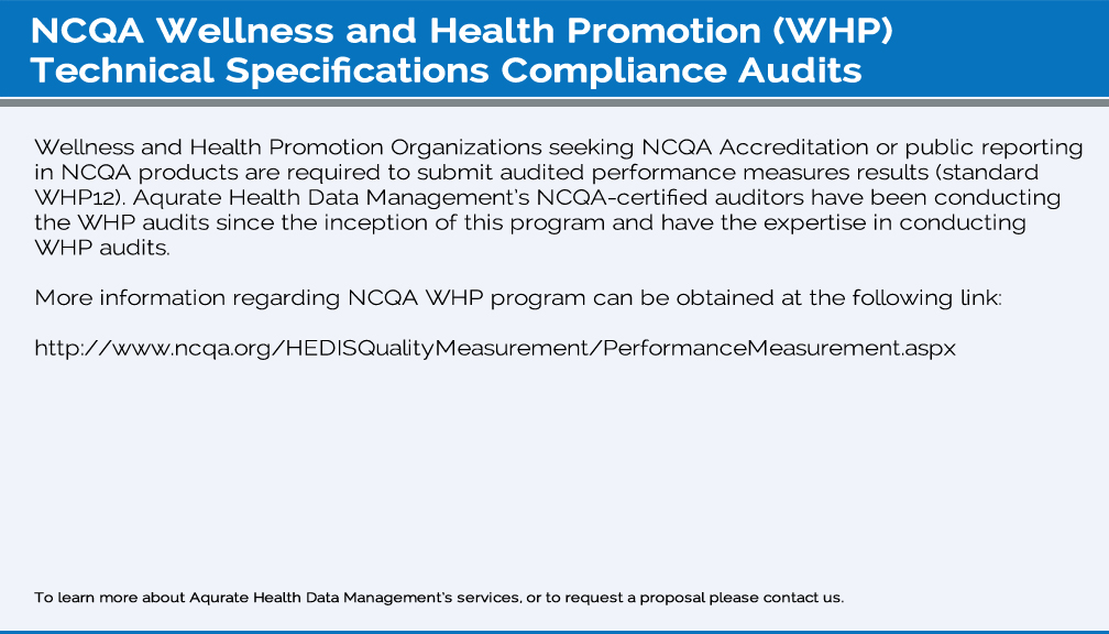 more infoNCQA Wellness and Health Promotion (WHP) Technical Specifications Compliance Audit™