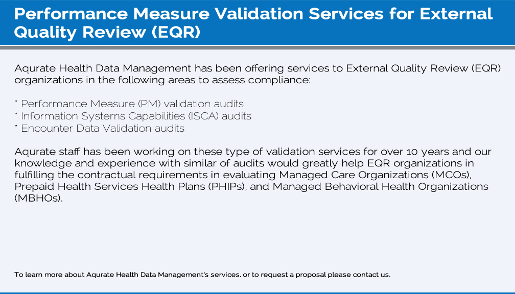 Aqurate Health Data Management has been offering services to External Quality Review (EQR)