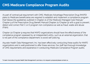 Our staff has thorough knowledge of CMS requirements and experience in conducting Medicare Compliance Program audits.more info